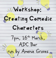 Not sure how to spend the last week of term? Join us for a comedy workshop on 'Creating Comedic Characters' run by fabulous Footlight Amenie Groves. Whether you've got a comedy play in the works, are interested in developing some fun personas for a sketch/stand-up set, or are just keen to have a silly time on a Monday evening this workshop is for you!