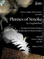 Girton College Music Society presents an original chamber opera! This hour-long, single-act production follows a particularly chaotic afternoon in government as a flustered Cabinet Minister grapples with the re-emergence of the White Feather Campaign (a movement designed to shame conscientious objectors) at the beginning of the Second World War. Couched in a warm tonal language, Plumes of Smoke promises comedy and tragedy, satire and thrill in equal measure.